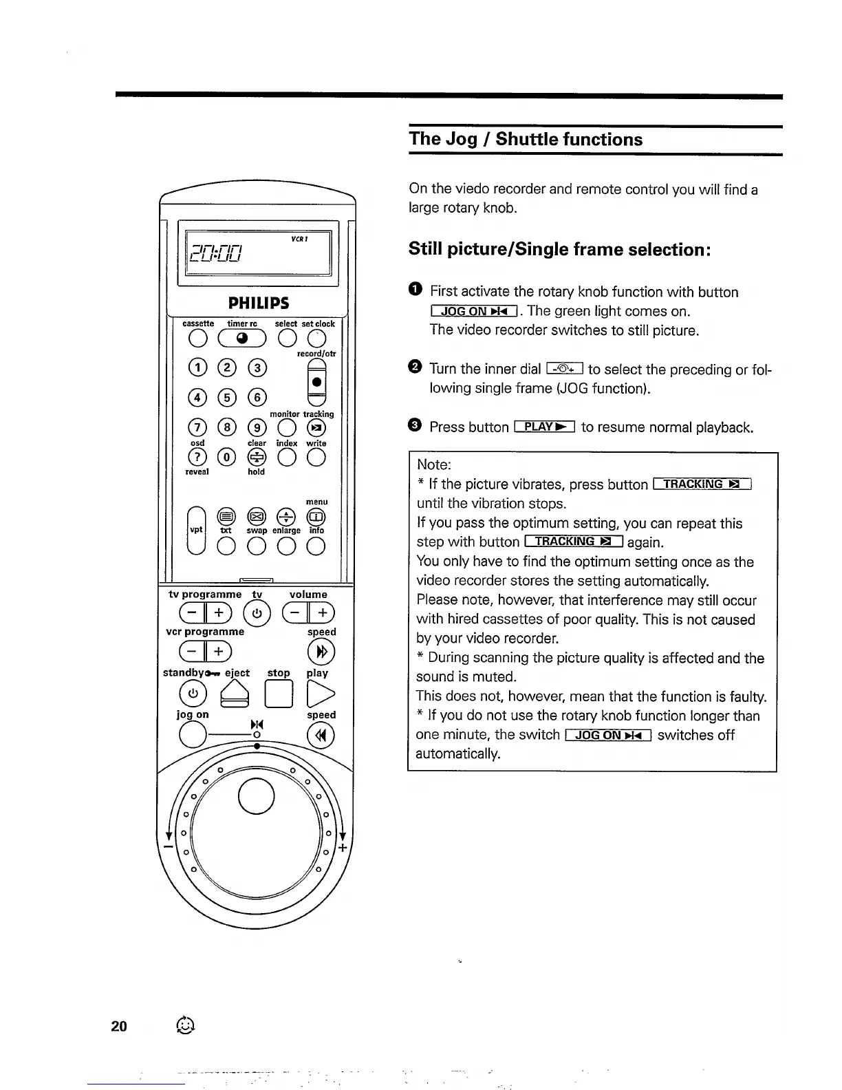 Philips VR833 - The Jog;Shuttle Functions; Still Picture;Single Frame Selection