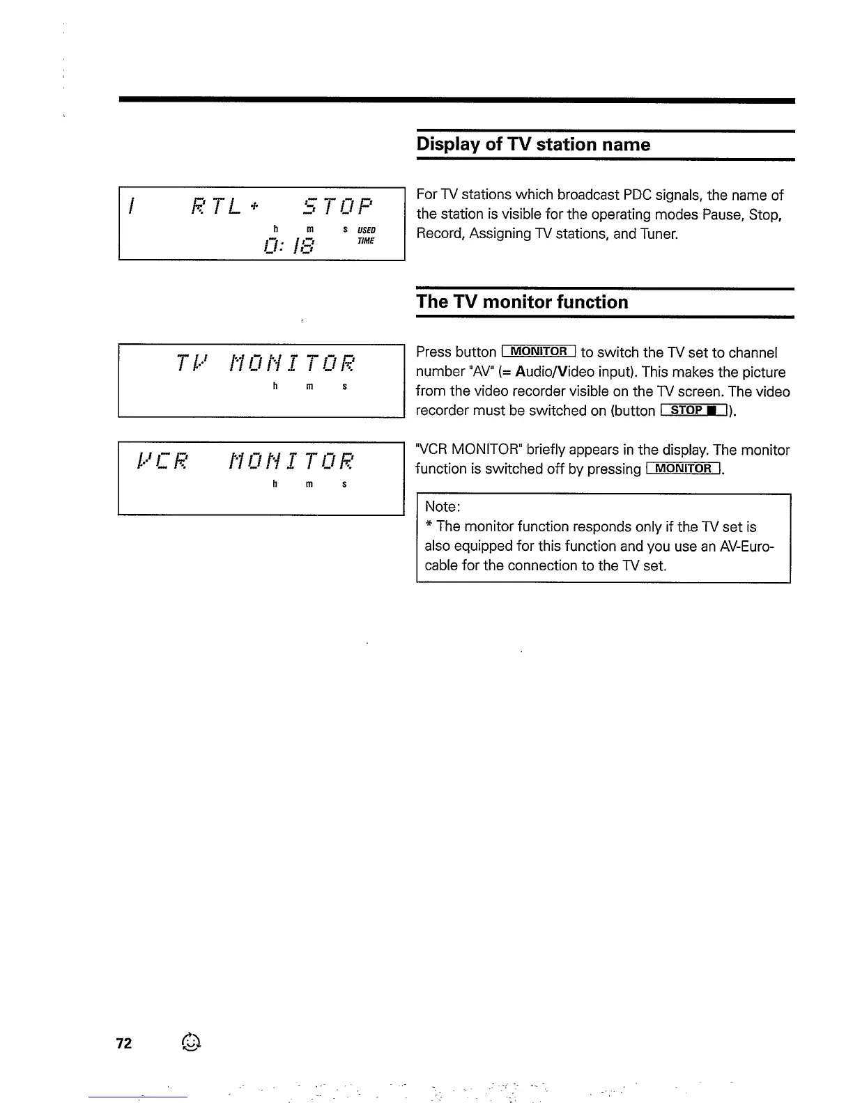 Philips VR833 - Display of TV Station Name; The TV Monitor Function