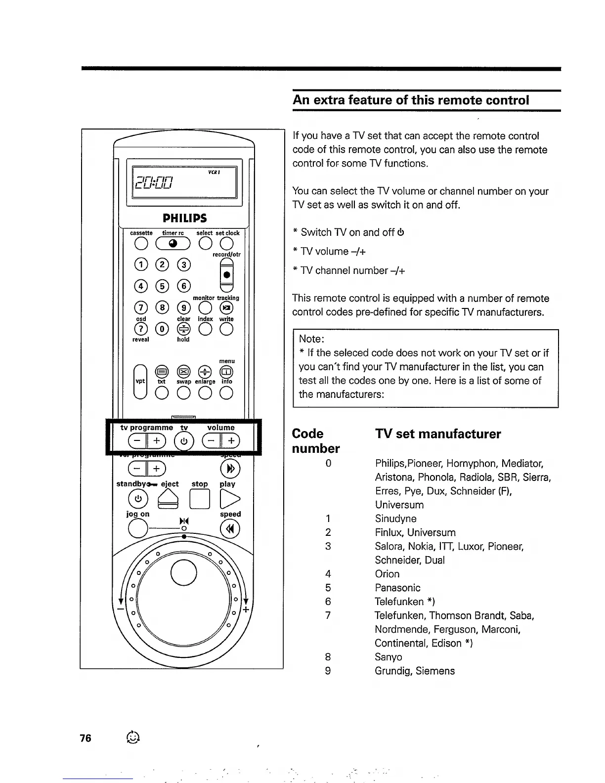 Philips VR833 - An Extra Function of the Remote Control