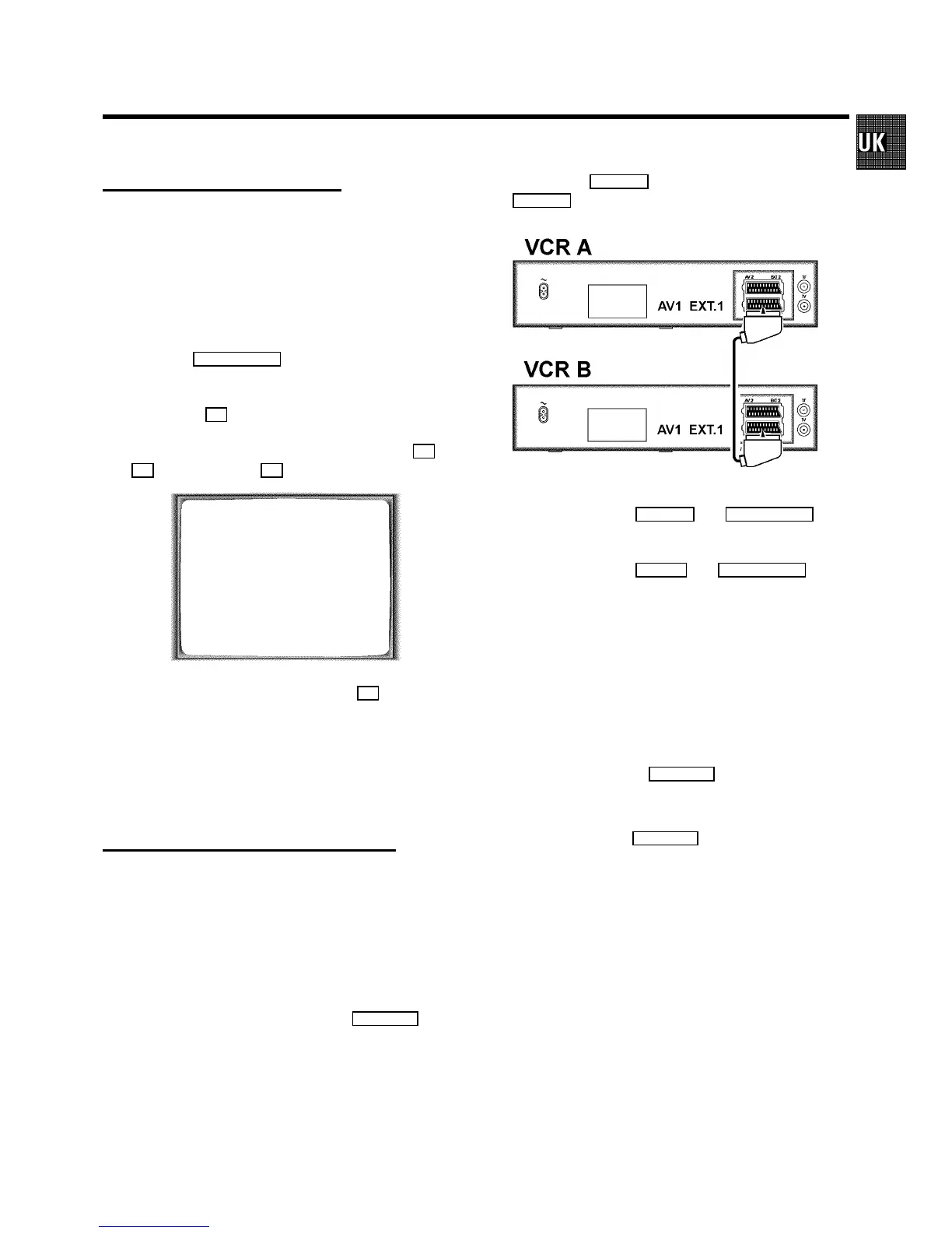 b Connect the EXT.1 AV 1 socket on VCR A to the