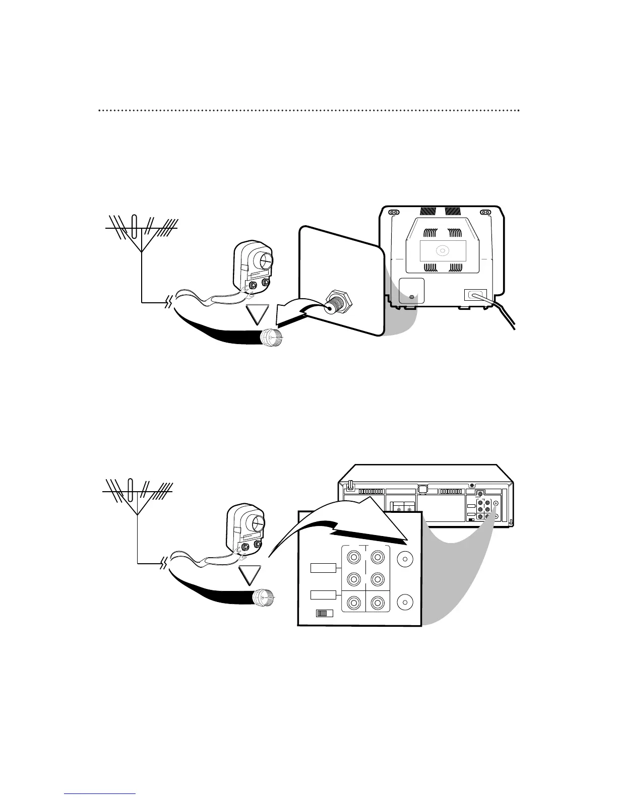 The basic VCR/TV connection – antenna/cable to VCR to TV – is shown below. If you have a Cable Box or