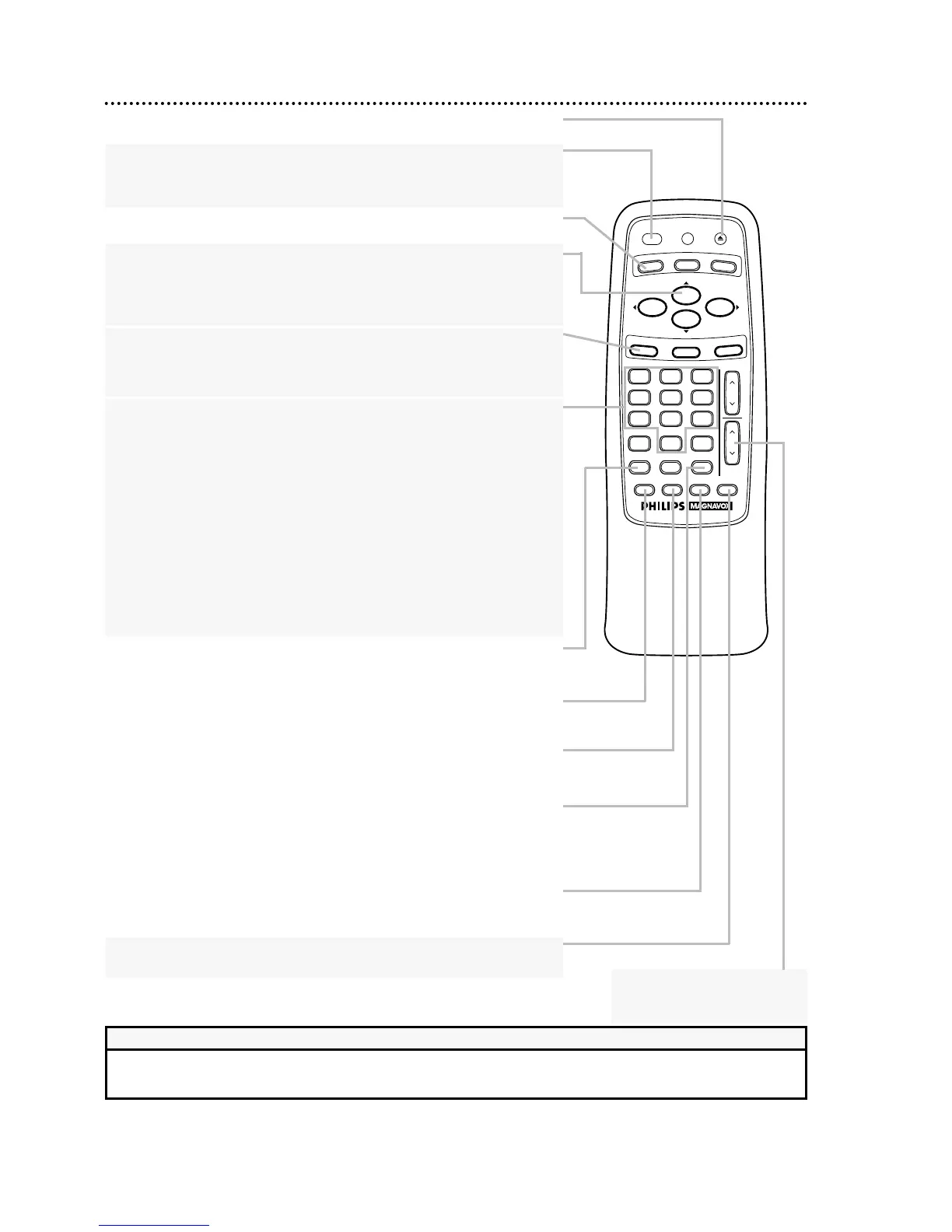 Press to access the VCR menu. Or, if you have a Magnavox, Philips, or