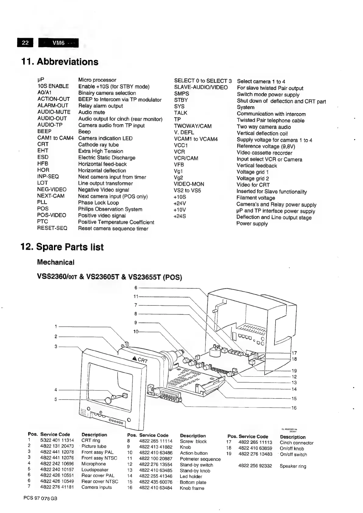 Philips VS23605T - Spare Parts List; POS Models Spare Parts