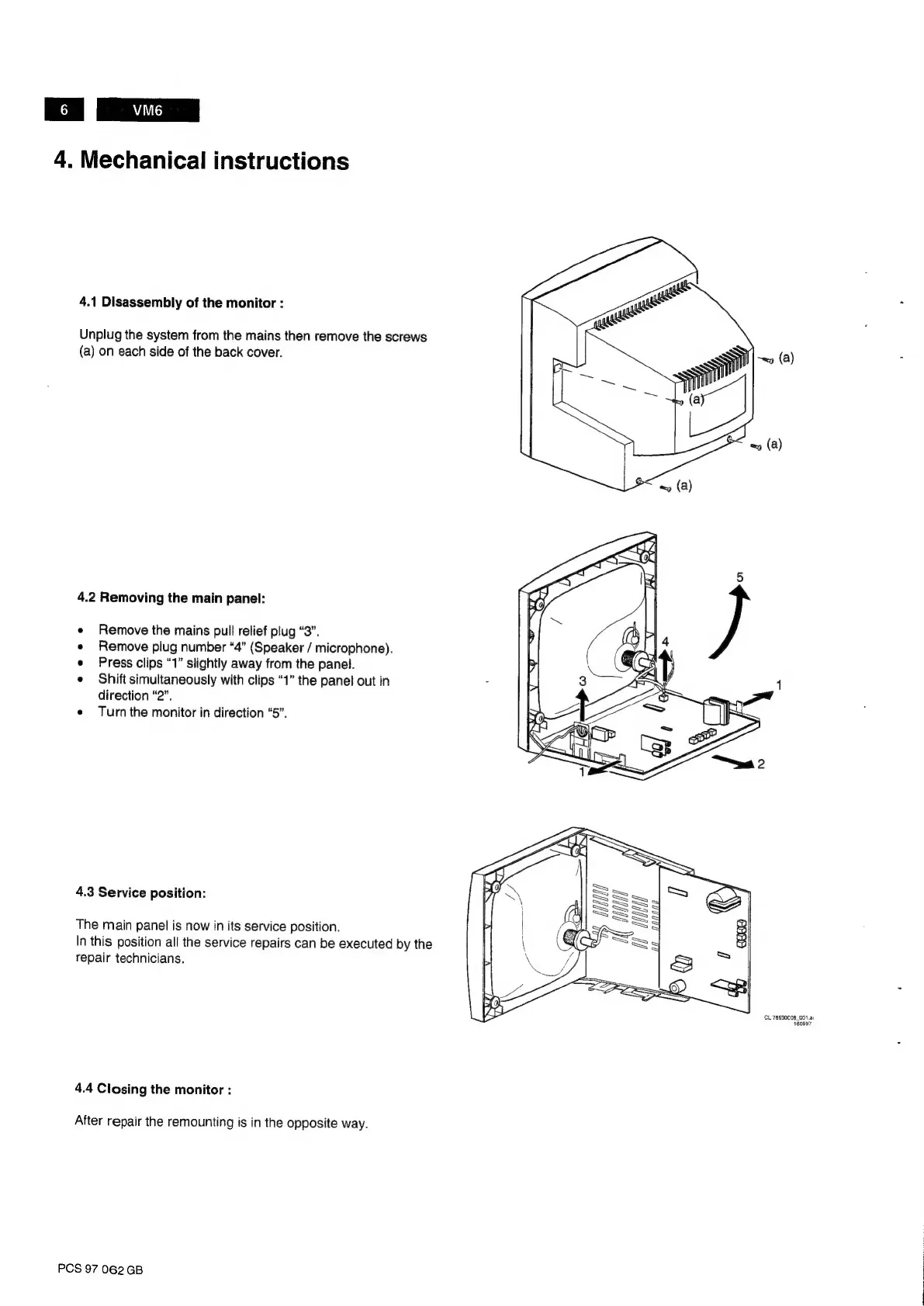Philips VS23605T - Mechanical Instructions; Disassembly and Panel Removal; Service Position and Reassembly