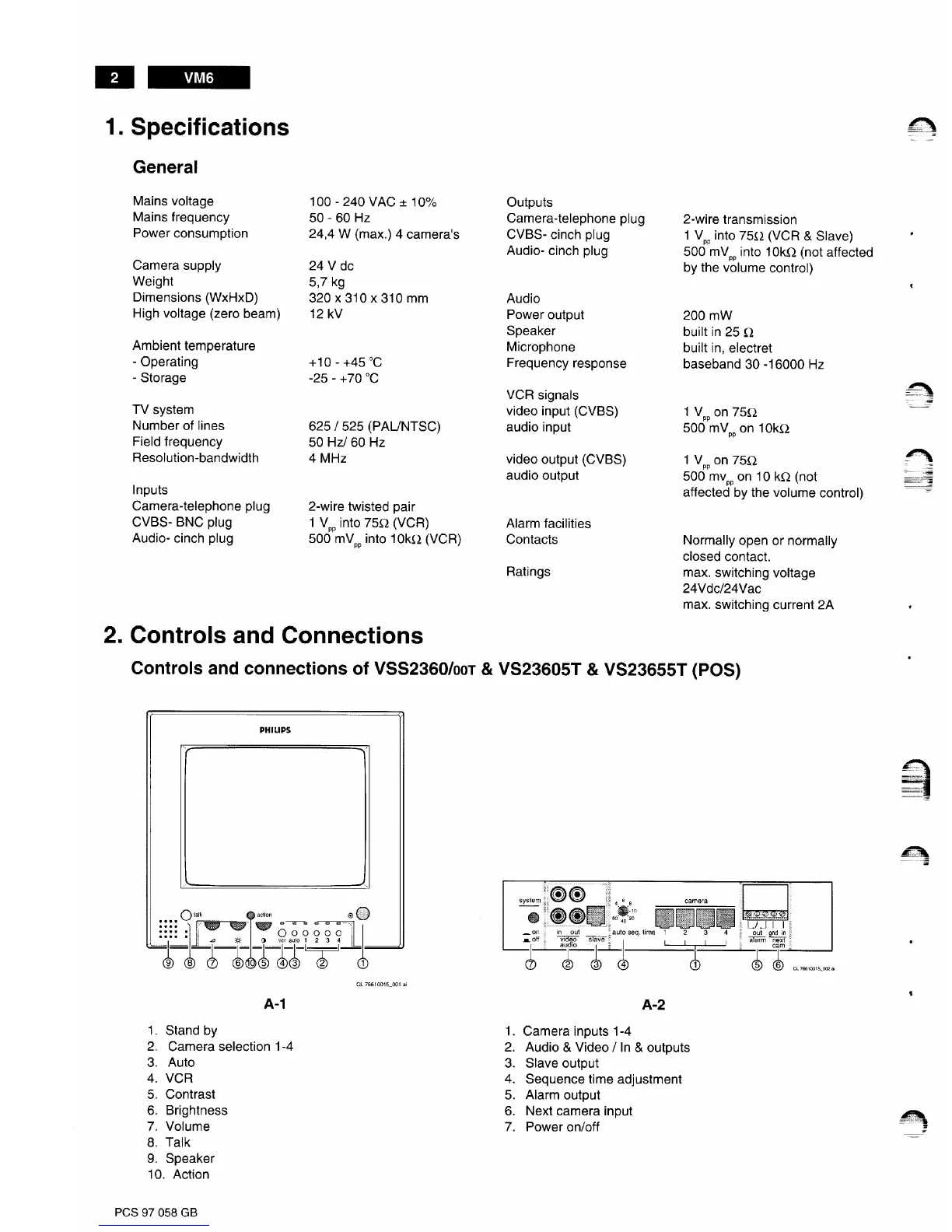 Philips VSS2360 - Specifications; General; Controls and Connections