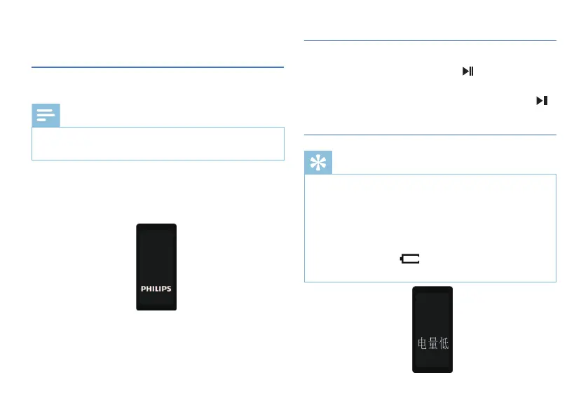 开机:在关机状态下,长按“播放键” ( )约 2 到 3 秒钟开机,
