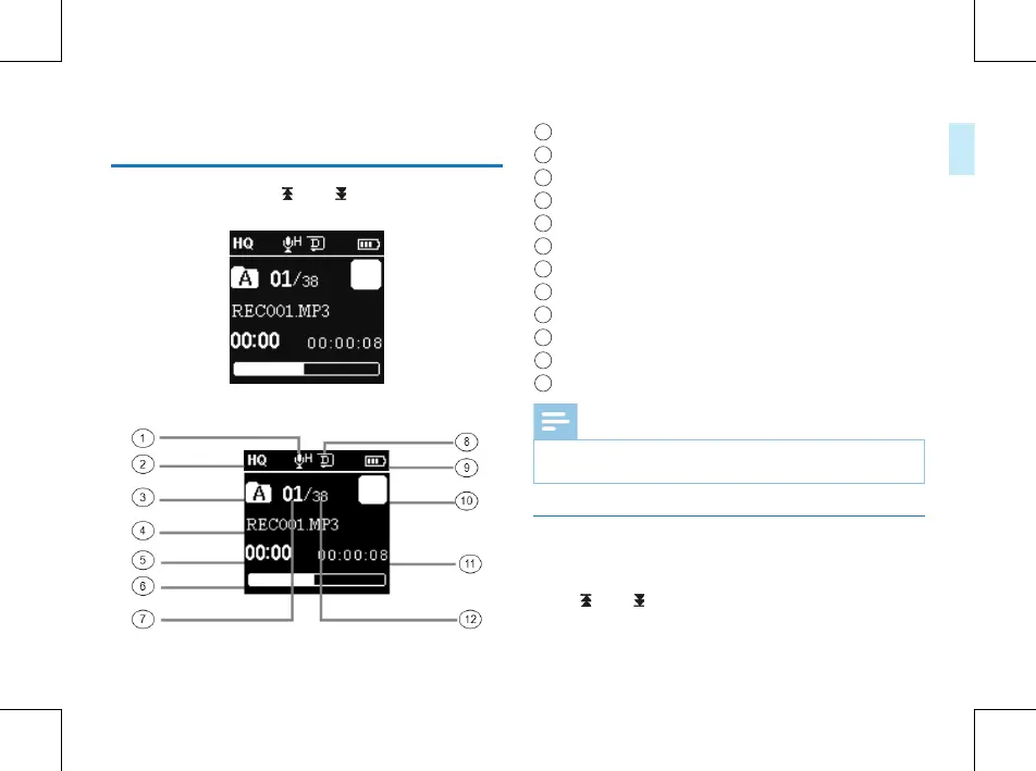 2 按“ ”或“ ”键,选择要播放的文件。