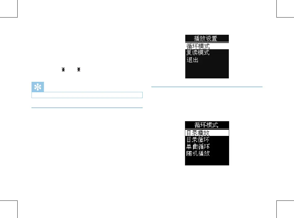 短按菜单键,弹出如下播放菜单列表:循环模式,复读模式。