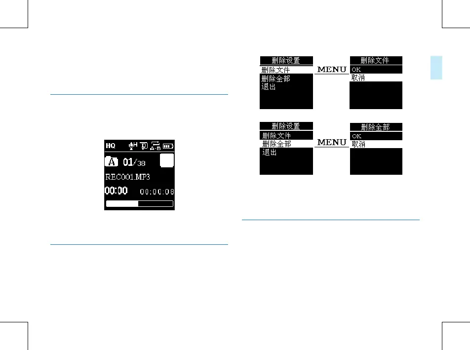 在语音播放停止界面下,长按删除键,将会弹出功能菜单 : 删