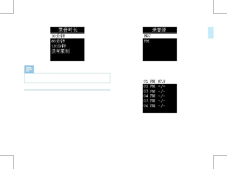 者收音电台 (FM) 作为录音源,按“+”和“-”切换选择 ,系