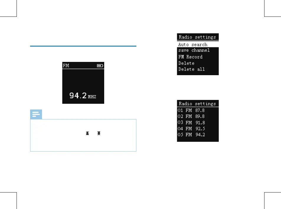 following menu, including: Auto search, Save Channel, FM