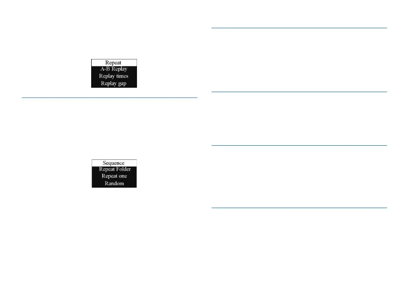 the following playing modes: Repeat, A-B Replay, Replay times,