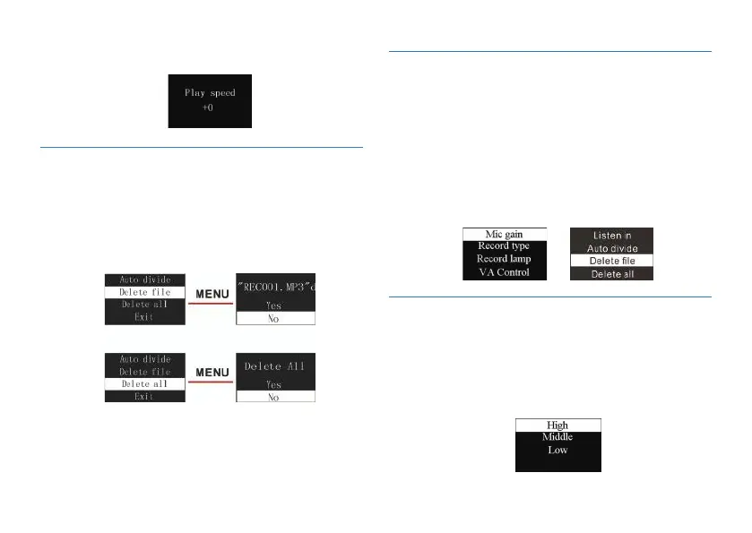 lamp, VA Control, Listen In, Auto divide, Delete file, Delete all