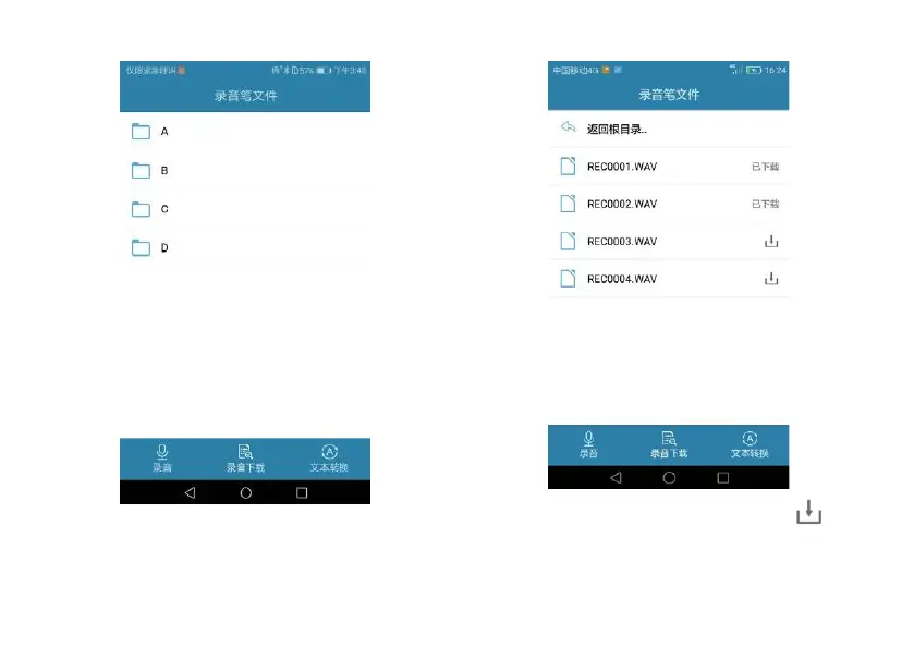 (1) 点击“A”文件夹后进入下载目录文件列表界面如下图所示