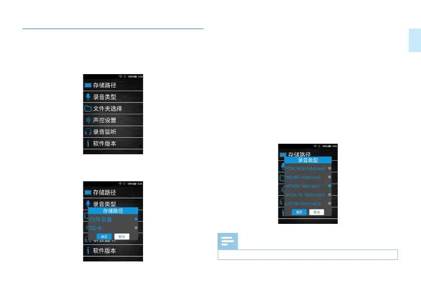 录音设置里包含:存储路径、录音类型、文件夹选择、声控设置、