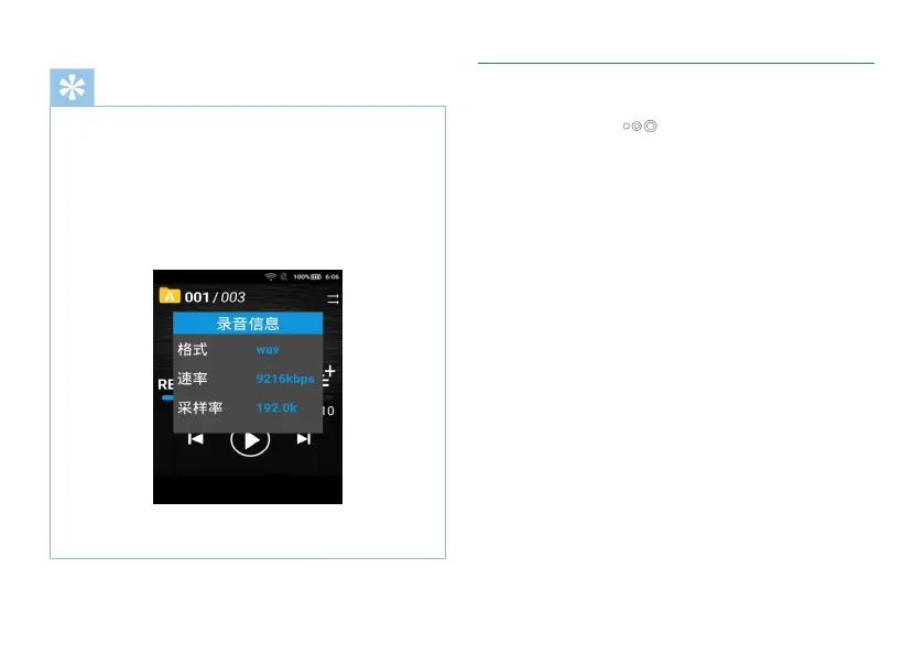 • 触摸文件信息图标,可以查看当前录音文件的格式、速率