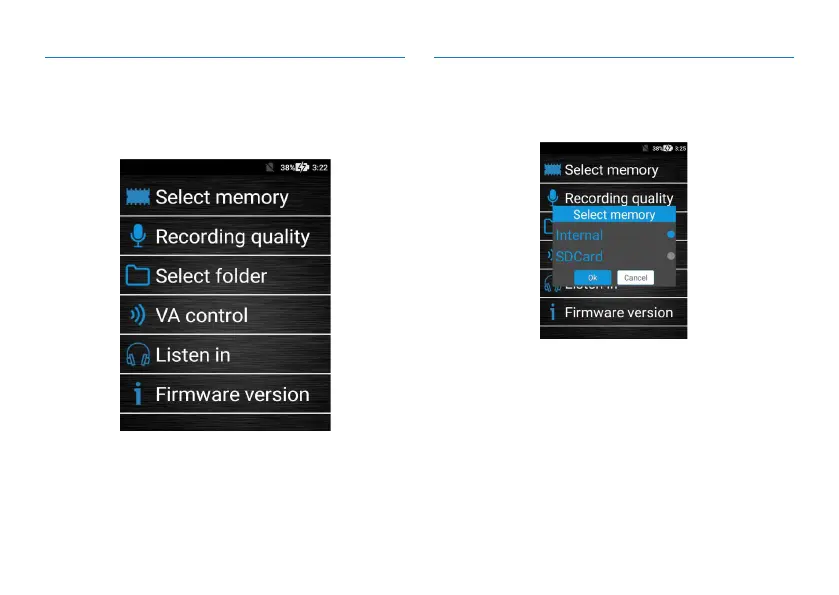 folder selection, voice control, and listen and software ver-