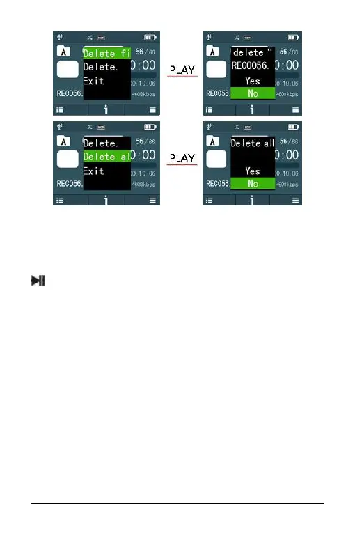 “-” to choose YES” to confirm deletion, NO” to keep file; press