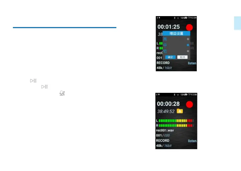 “低”录音增益。请选择合适的增益等级以保证录音品质。