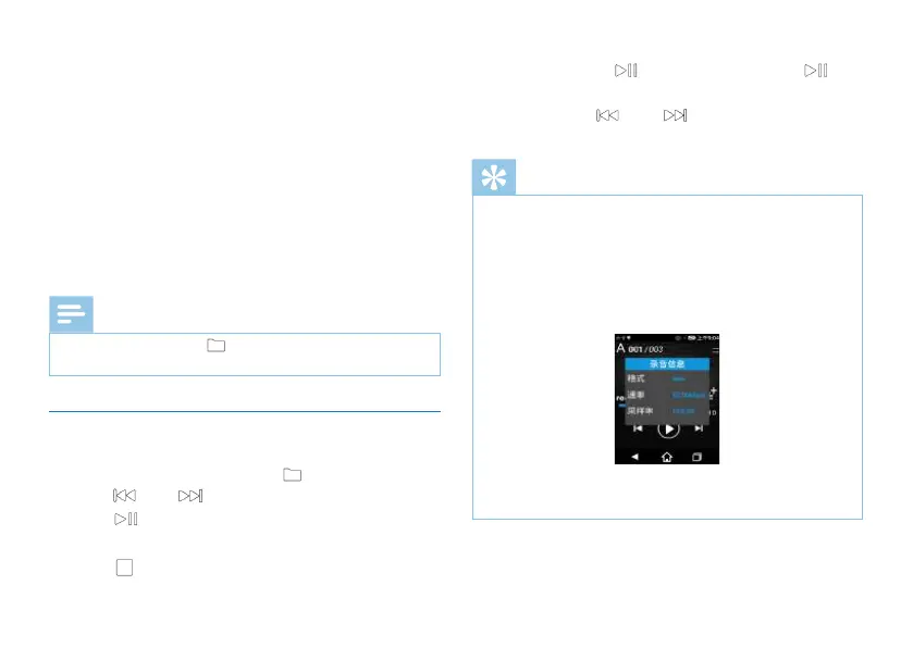 (1)在录音文件停止播放模式下,按“ ”键,选择所需文件夹。