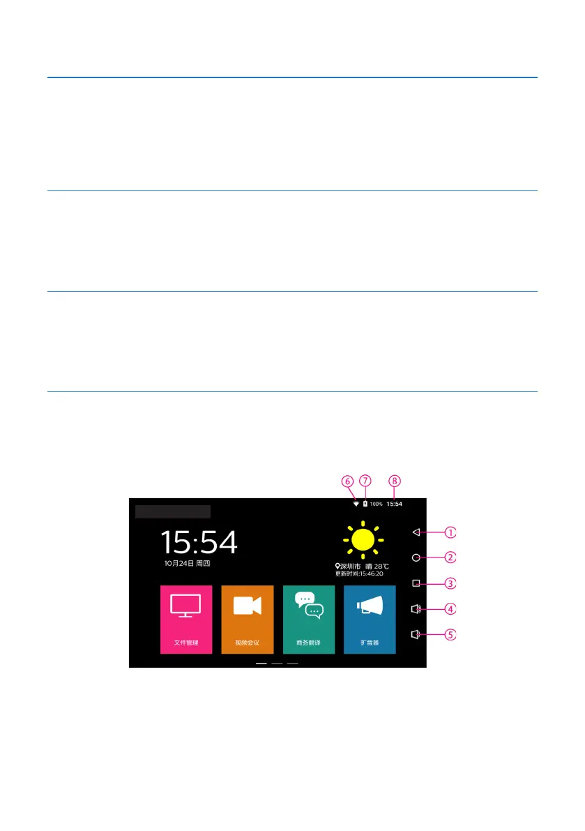 ① 返回键 ⑤ 音量减键