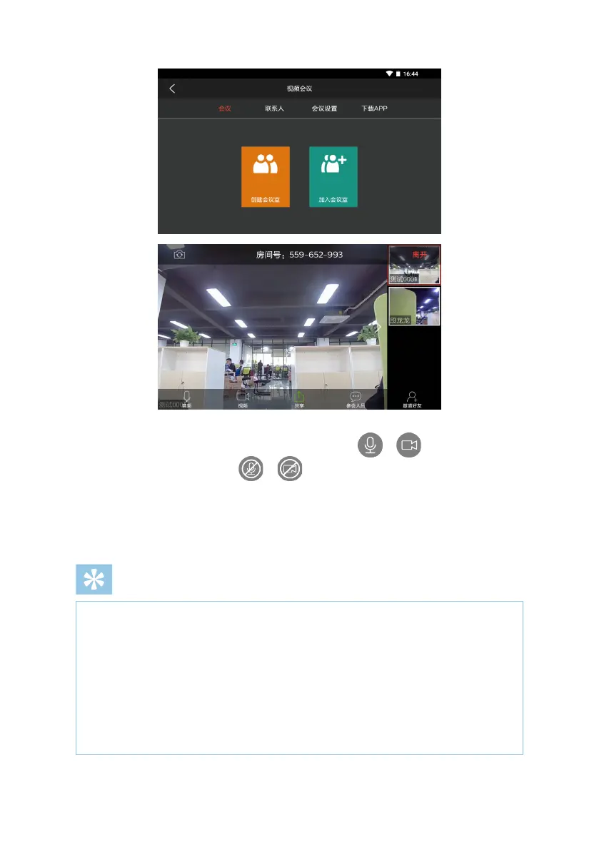 5.2.6、会议室创建成功,效果图如上,当下显示 、 时,说明打开了媒体