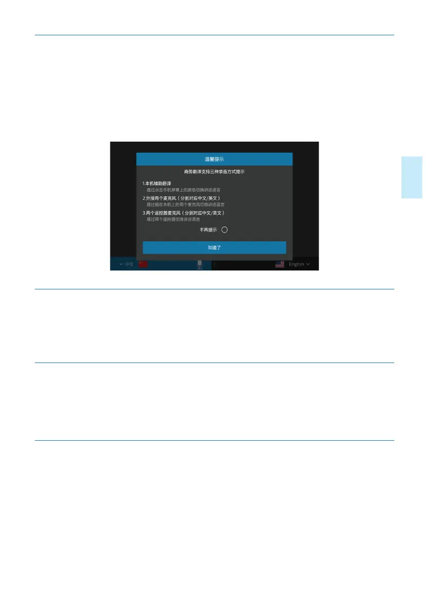 使用外接有线麦克风或遥控器的内置麦克风时,商务翻译界面会根据不同的