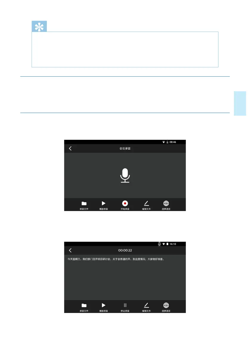 1) 点击“开始录音”图标,当右上角出现录音标志时,设备开始录音。同时进