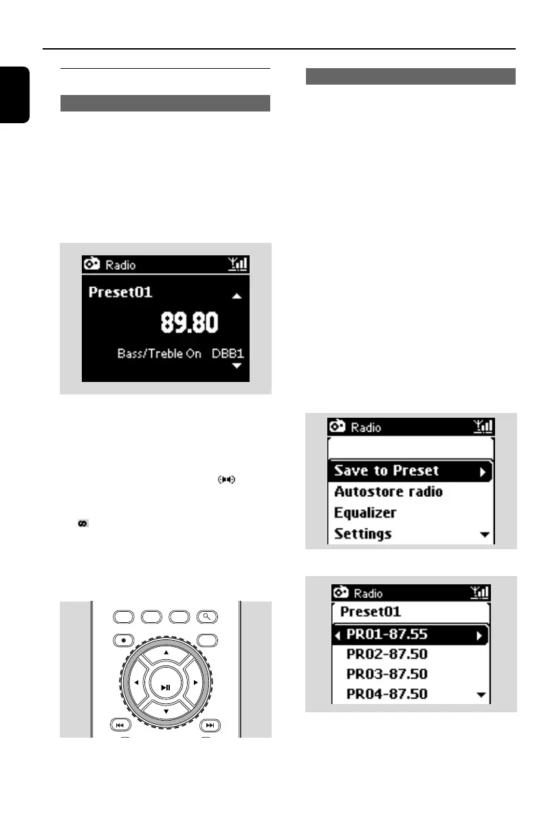 8.1.2 Storing preset radio stations