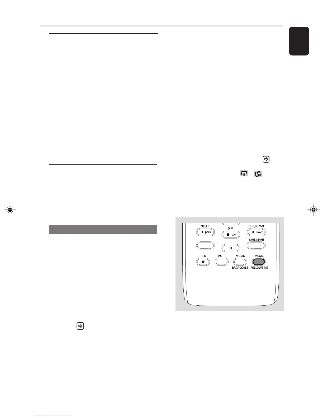 6 To stop MUSIC FOLLOWS ME, press