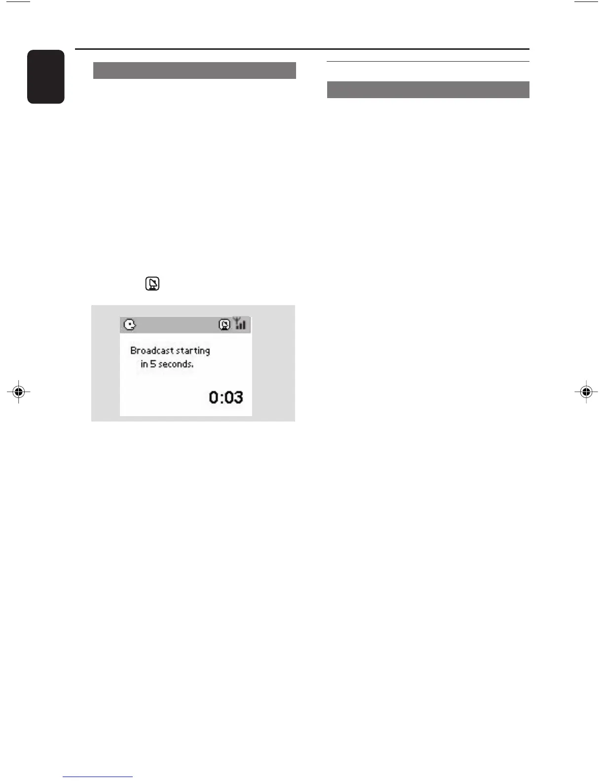 5 To stop MUSIC BROADCAST, press STOP/