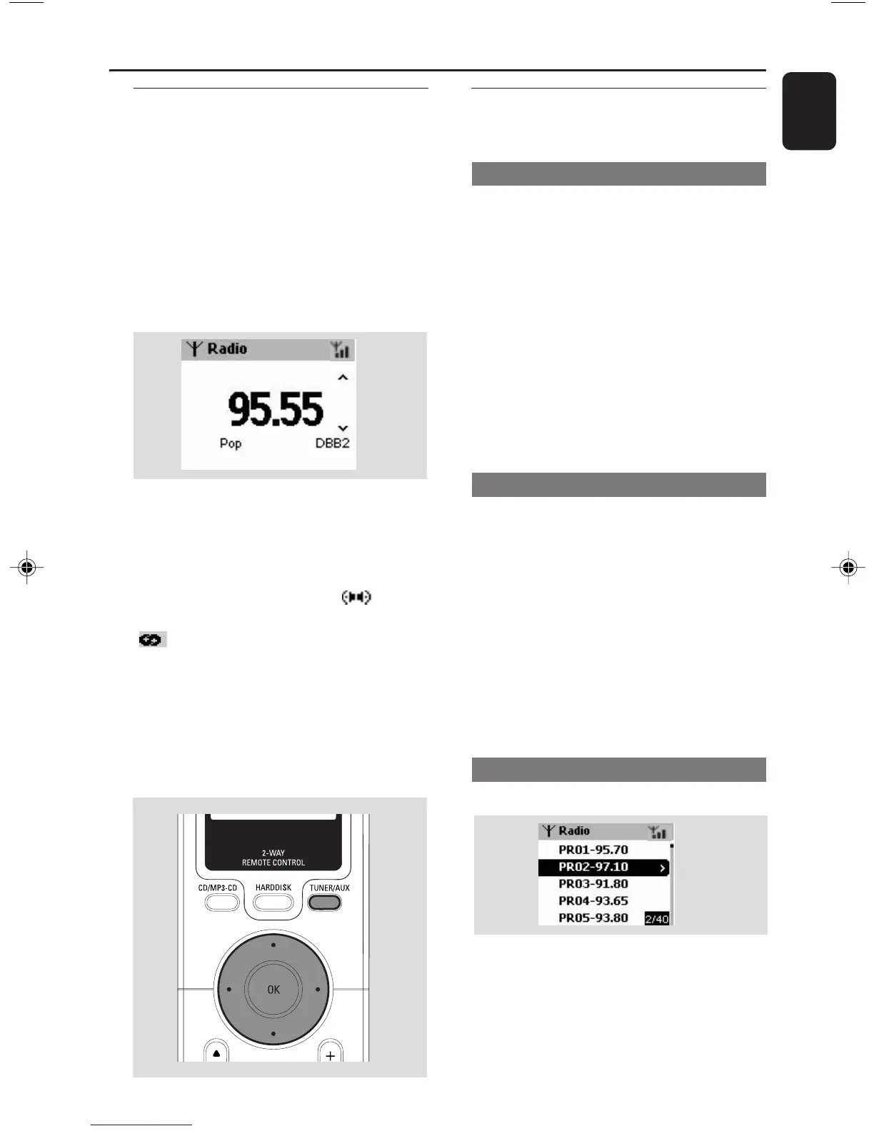 2 Press SOURCE once or more to select Radio