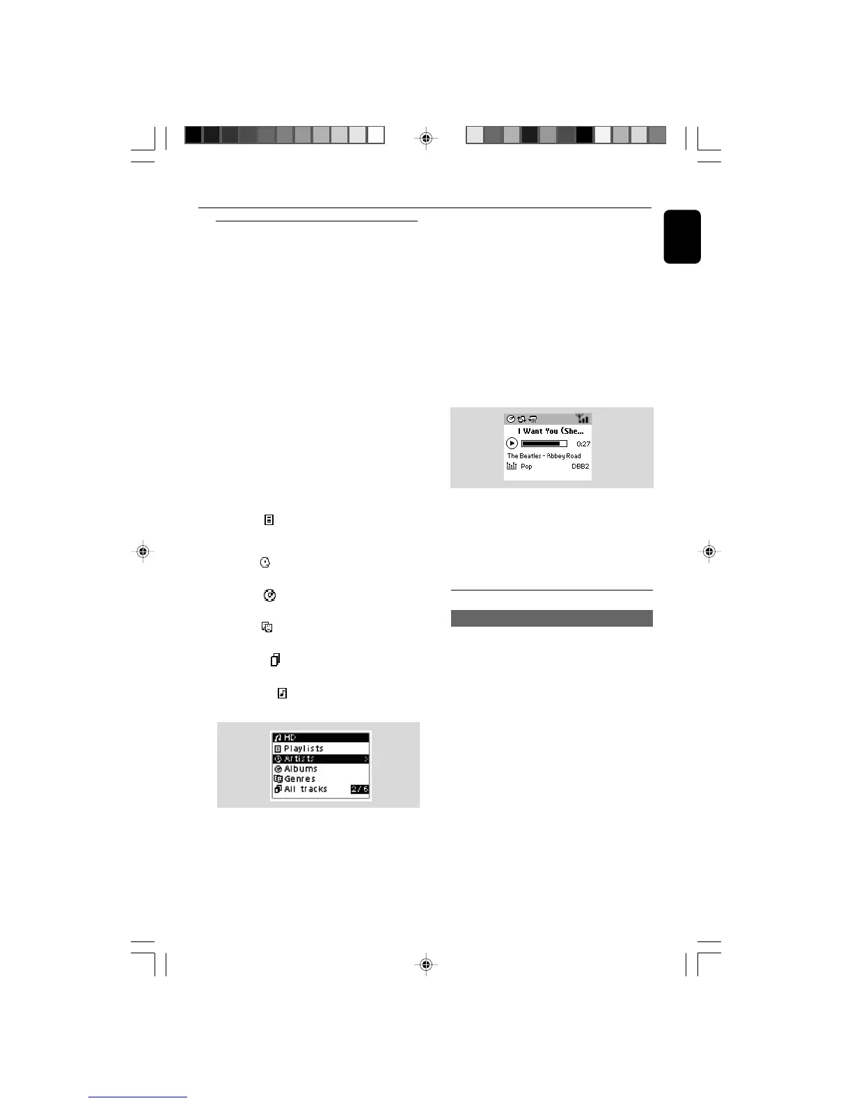 ● Press OK on a highlighted artist, genre or album