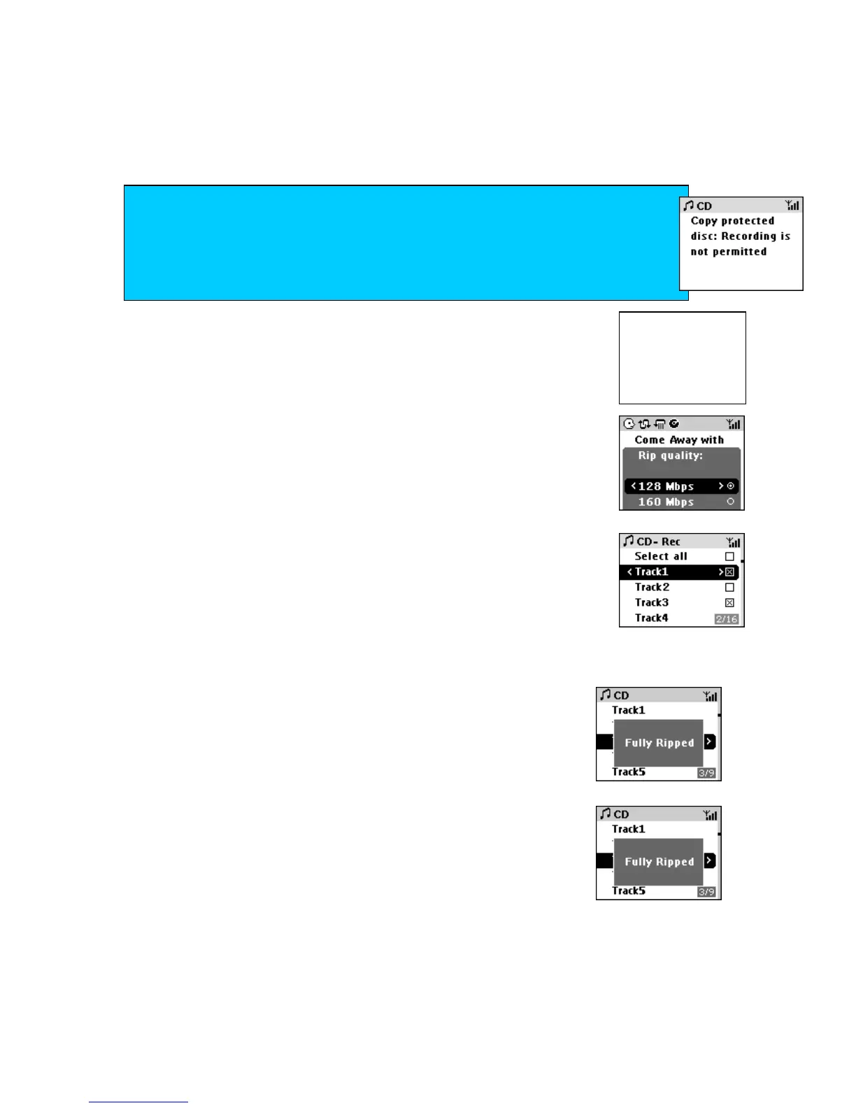Display shows list of CD tracks with checklist boxes by default all