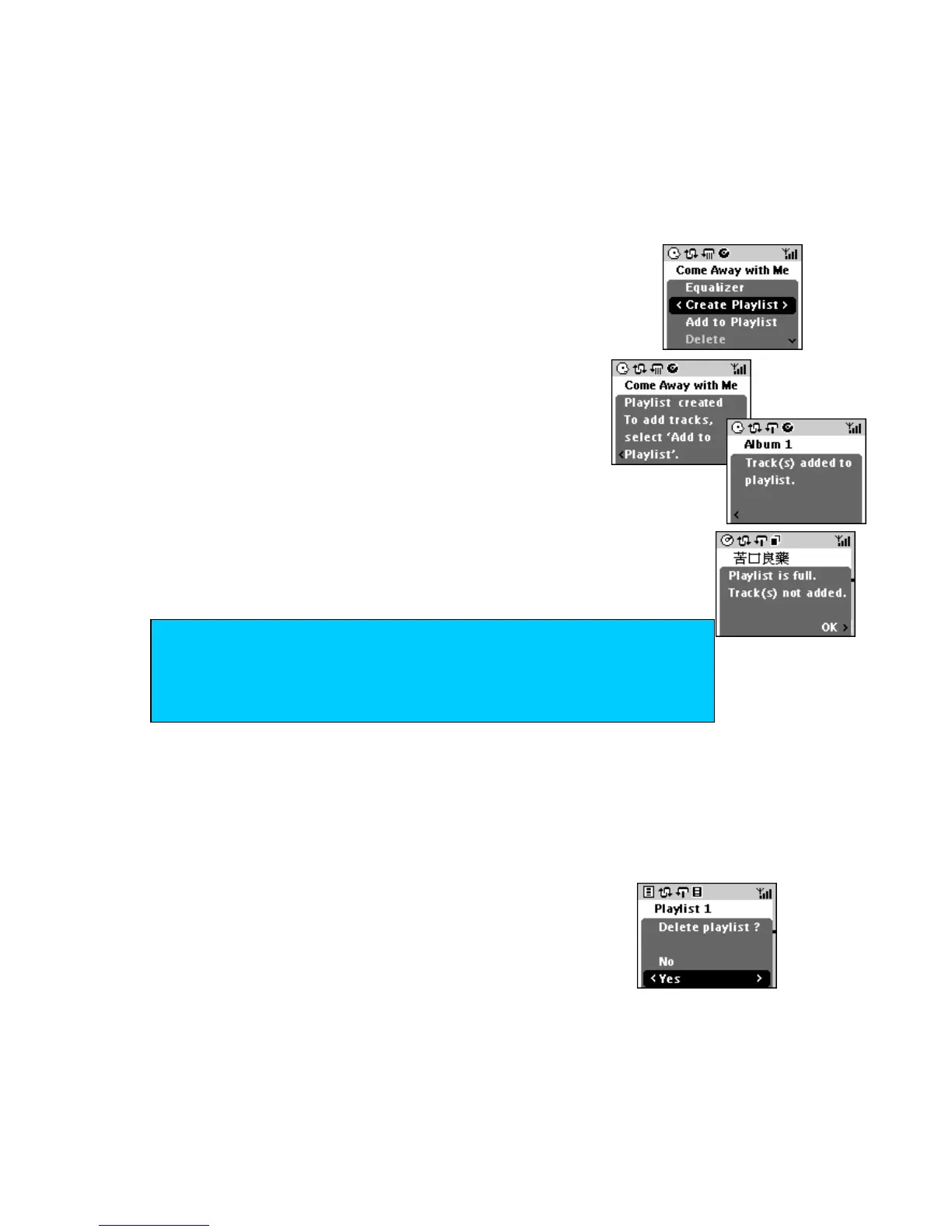 Display shows Playlist is full if you exceed the maximum number