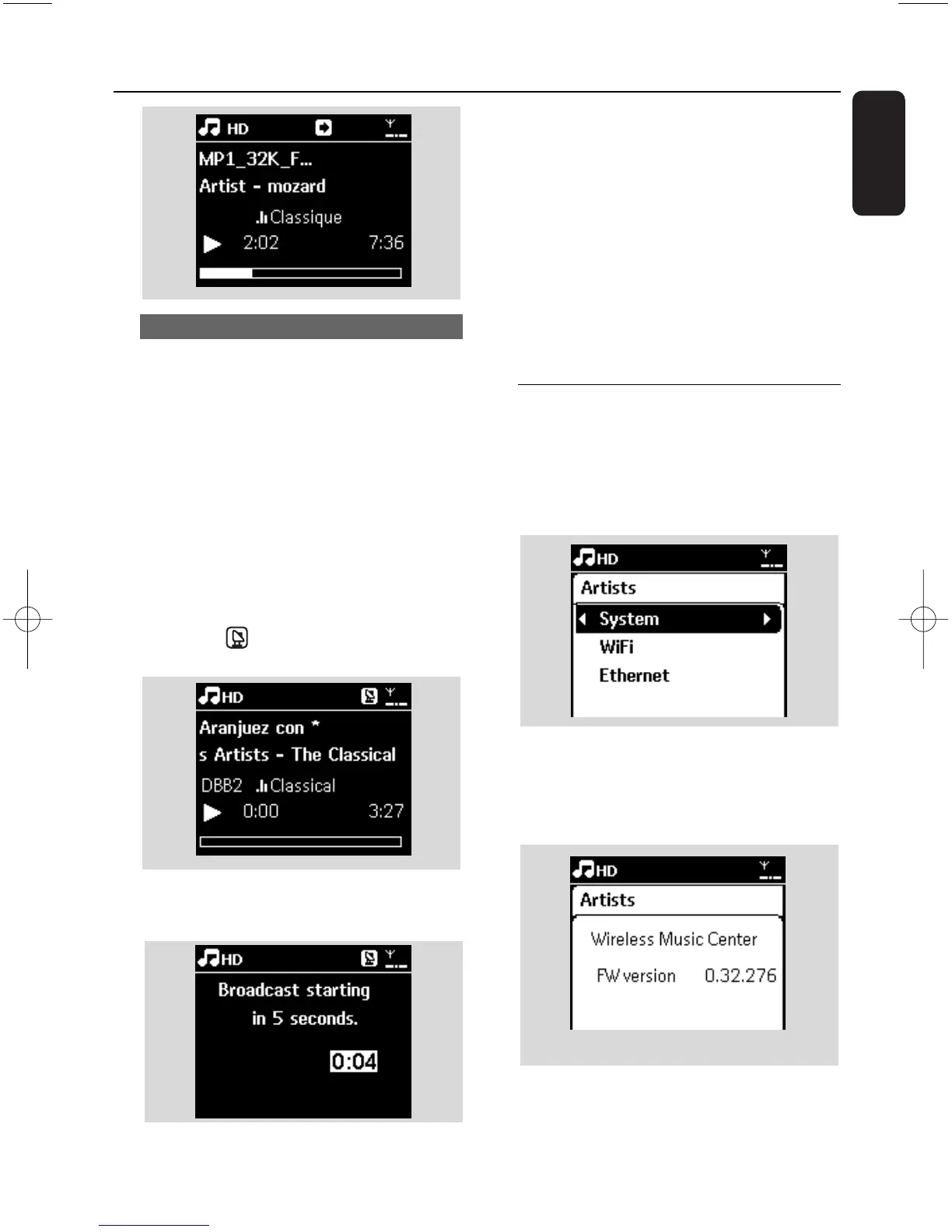 4 To stop MUSIC BROADCAST, press STOPÇ