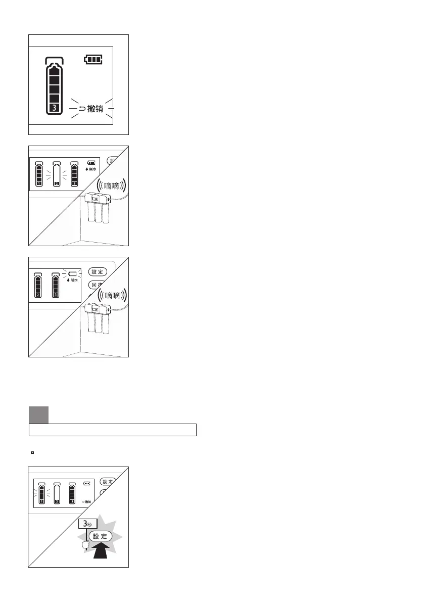 命過低時,淨水器間斷鳴叫,相對應的“濾芯壽命”圖示閃爍
