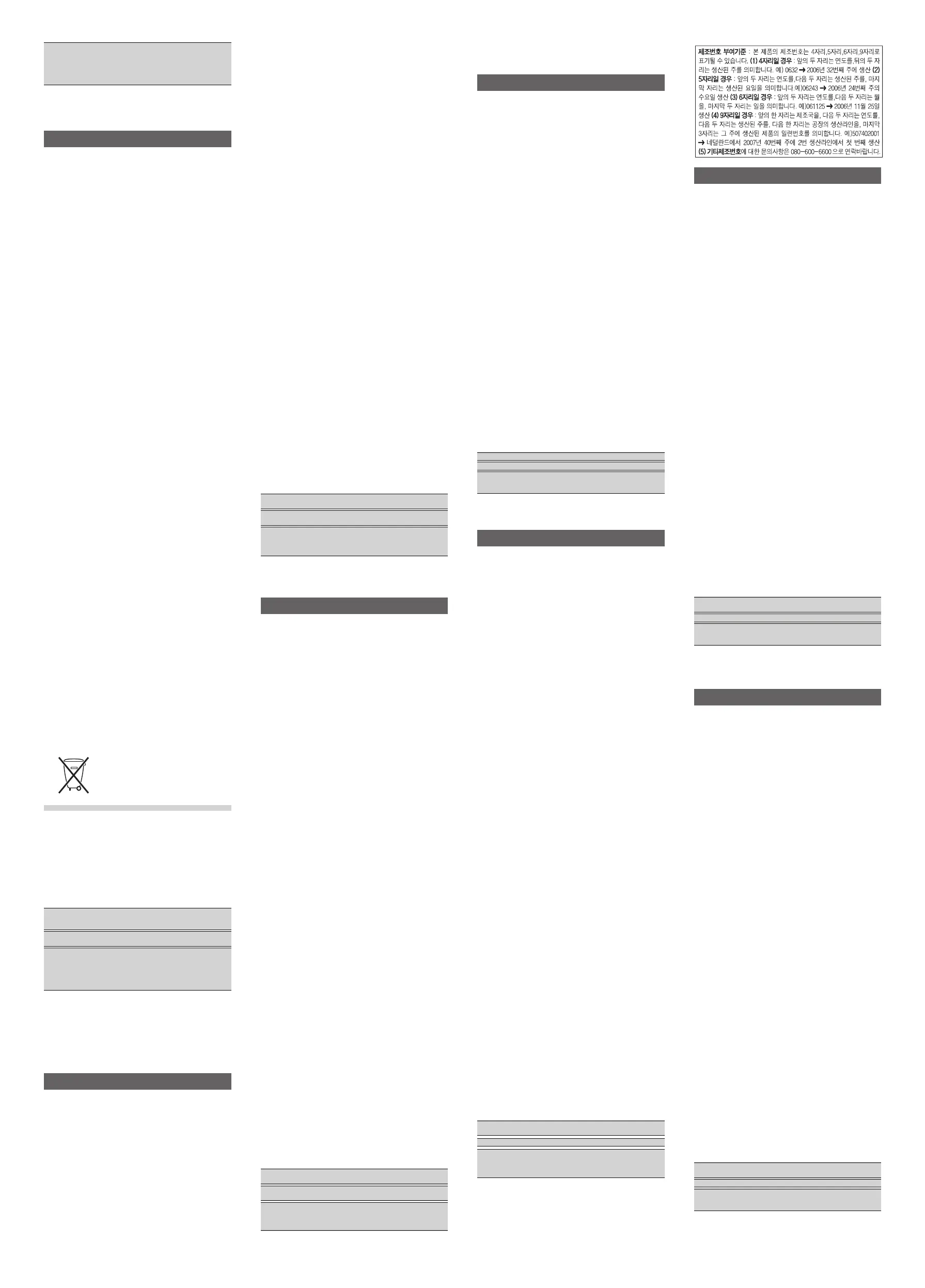 • 이 기호는 전기 제품 및 배터리를 일반 가정용 쓰레기 와 함께 폐기하면 안