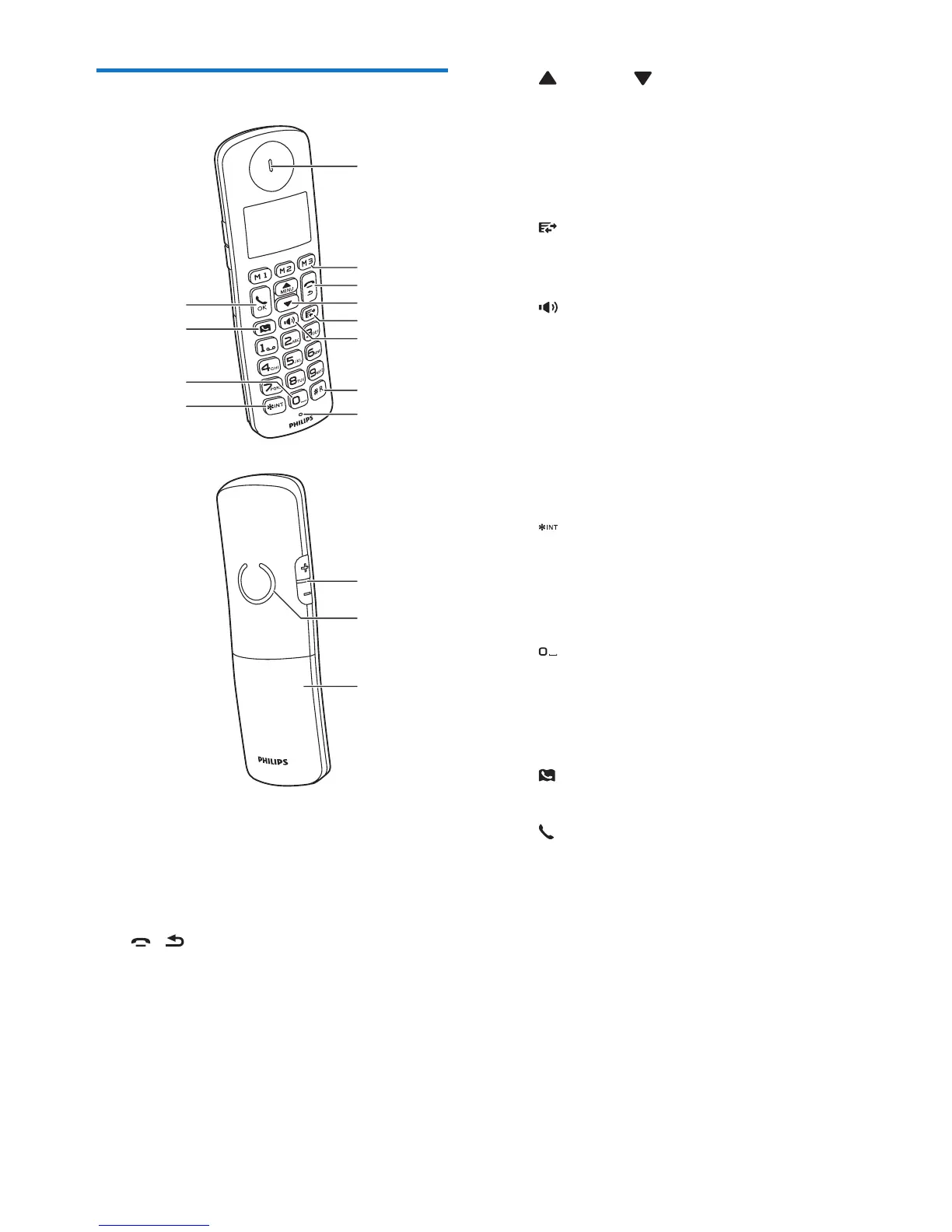 • Press and hold to switch the handset