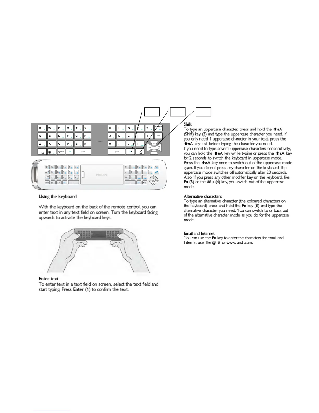 Philips YKF355-005 - Keyboard Usage; Text Input and Alternative Characters