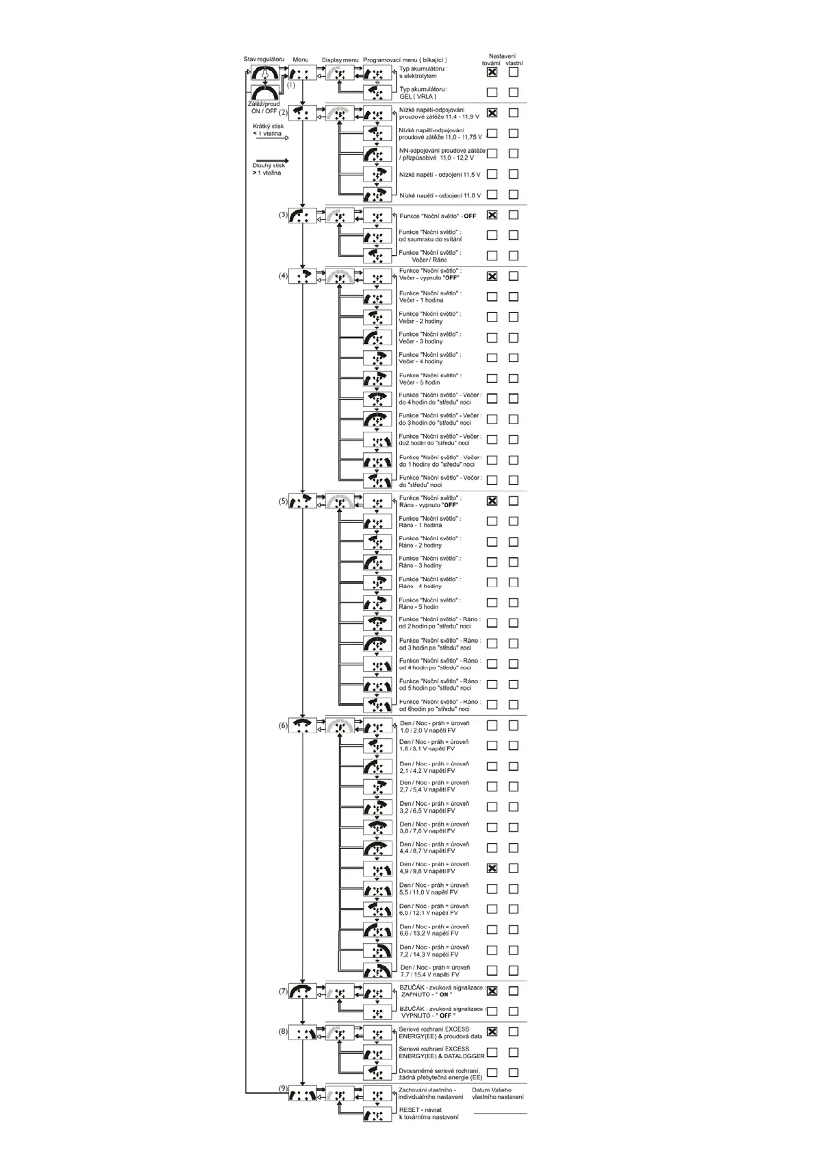 Tovární nastavení viz. Tabulka.