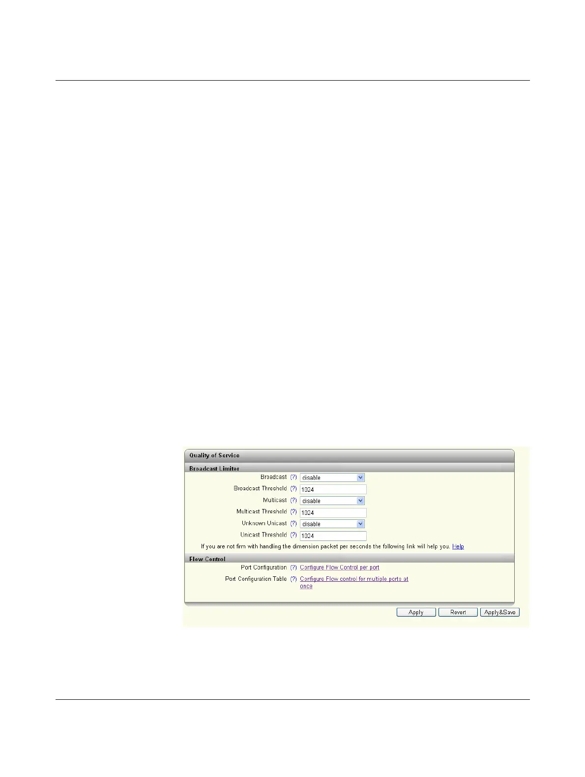 link opens the “Port Configuration Table” web page where flow control can be configured for