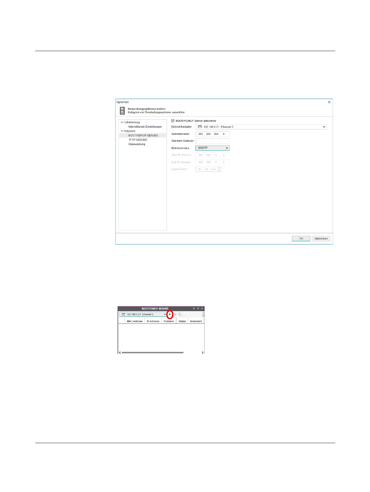 • BootP requests that are received are listed in the BOOTP/DHCP SERVER window in