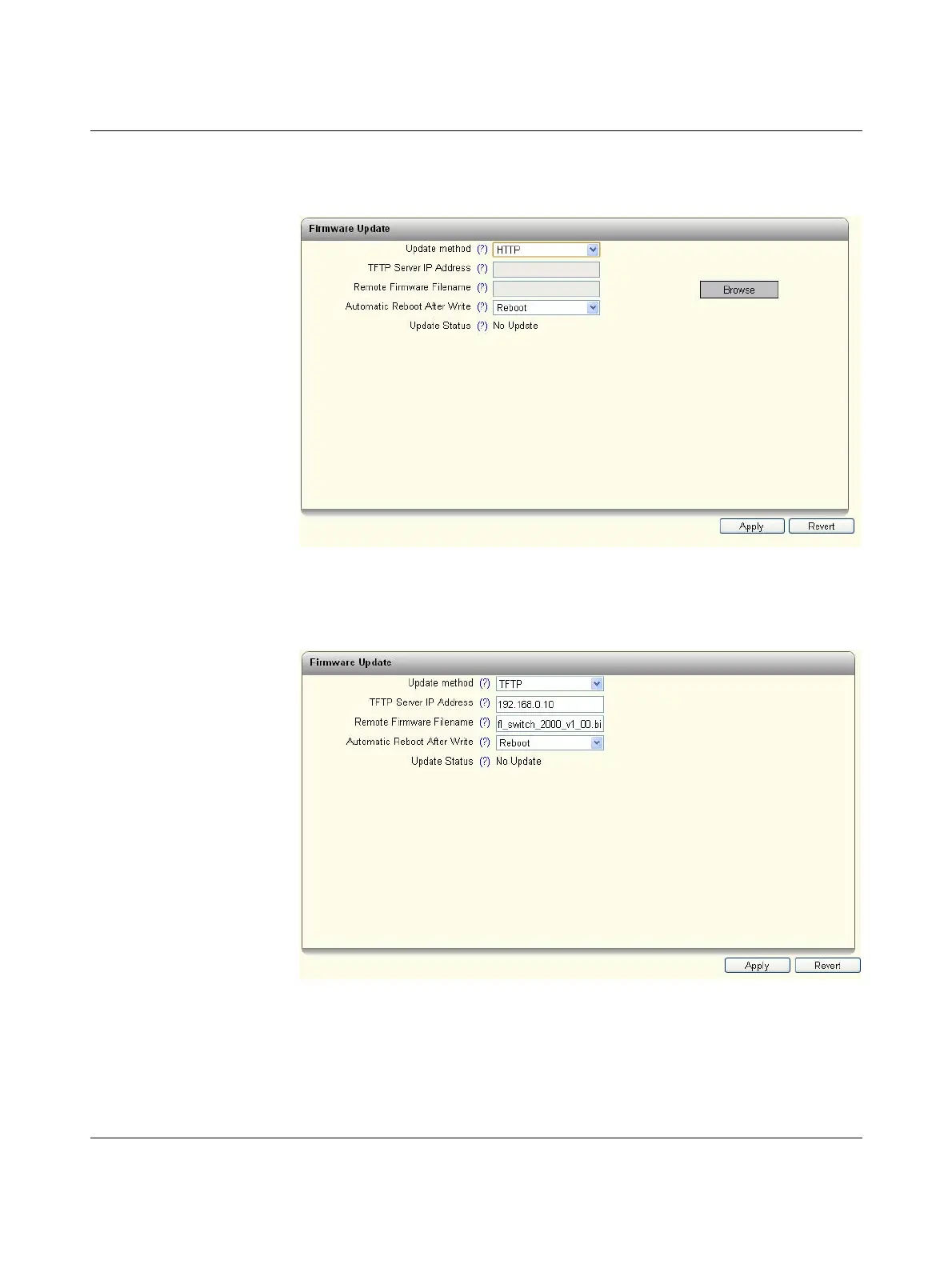 Update via TFTP: select “TFTP” as the method.