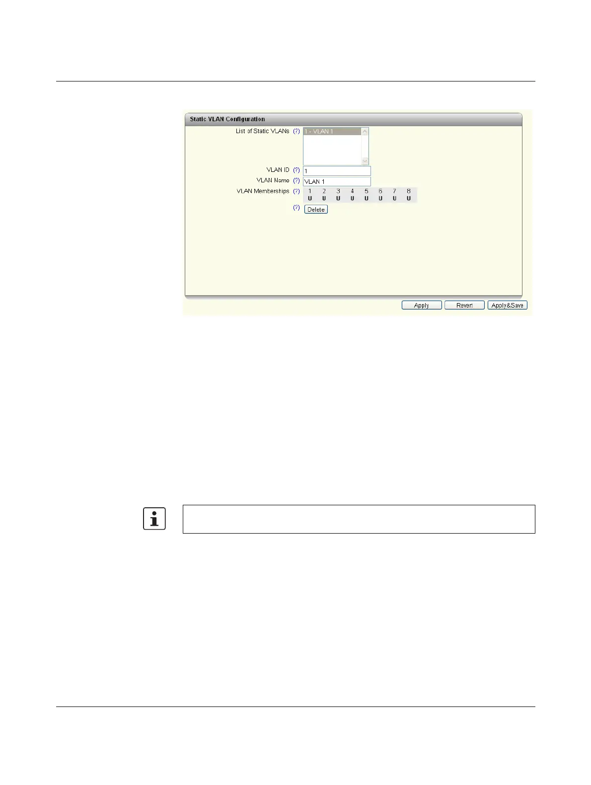 List of Static VLANs: all VLANs created up to this point are displayed here.