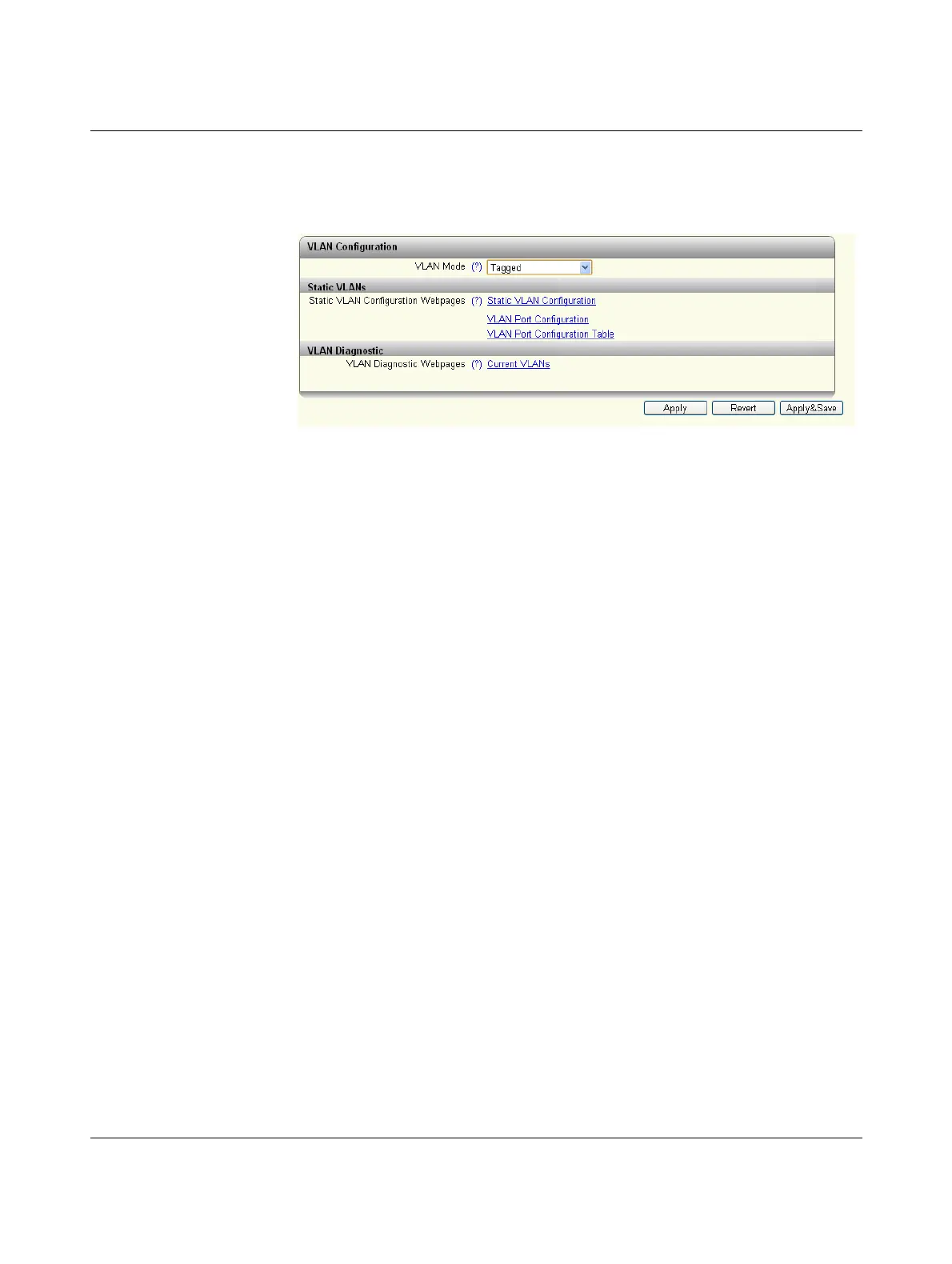 Clicking on the “Static VLAN Configuration” button takes you to the “Static VLAN Configu-