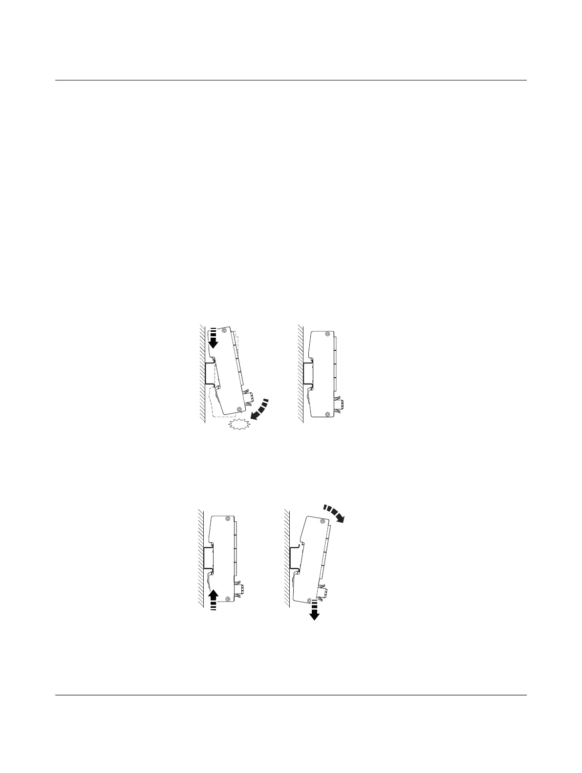 module must be hooked onto the top edge of the DIN rail. Push the module from the