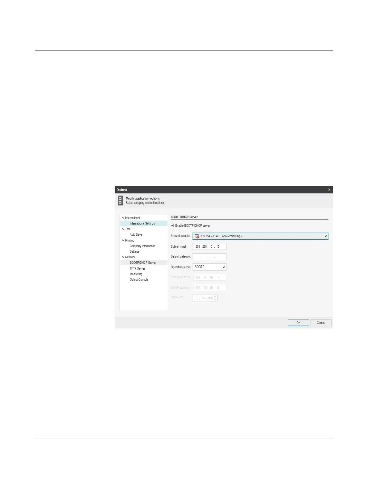 the “BootP” operating mode. You can also adjust the subnet mask and configure a de-