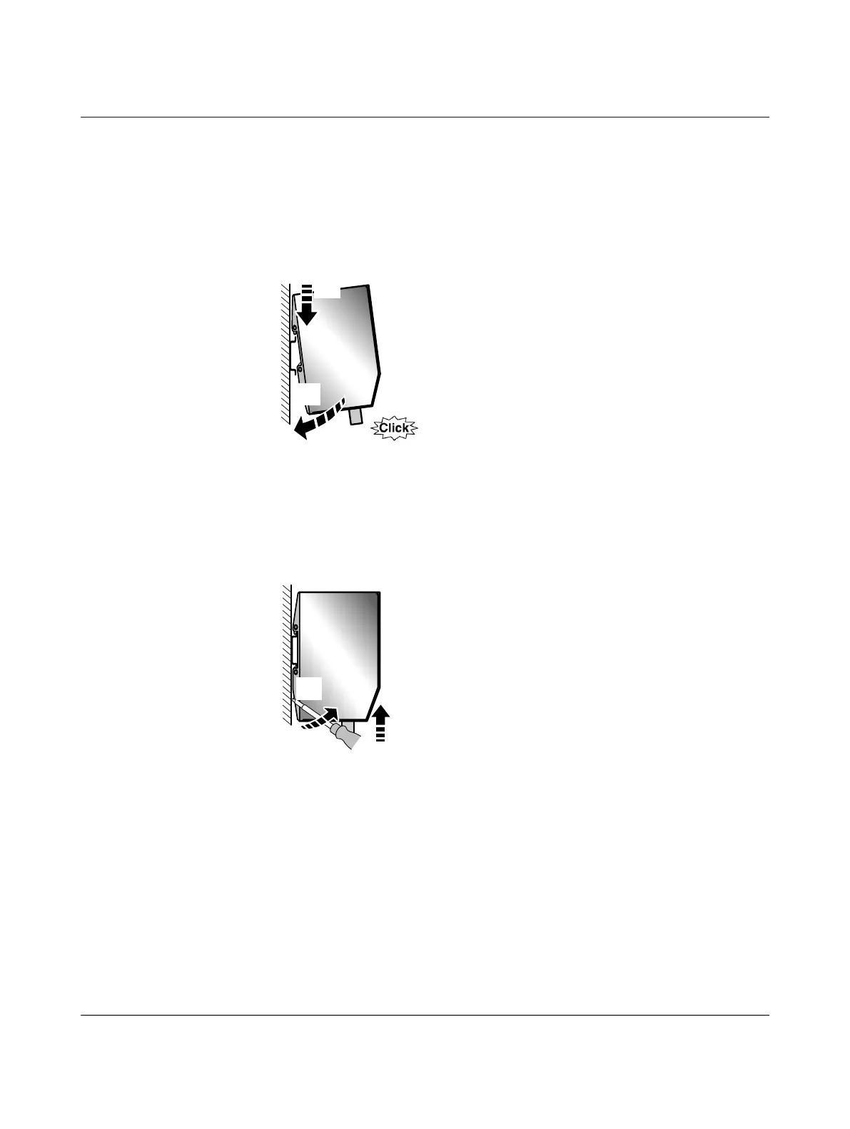 module must be hooked onto the top edge of the DIN rail. Push the module from the
