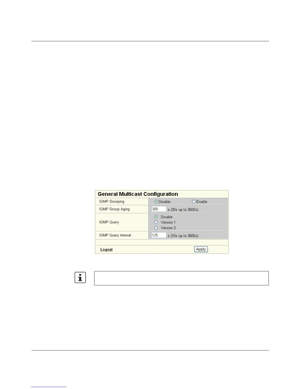 This web page provides global settings for multicast support. Here, IGMP snooping can be